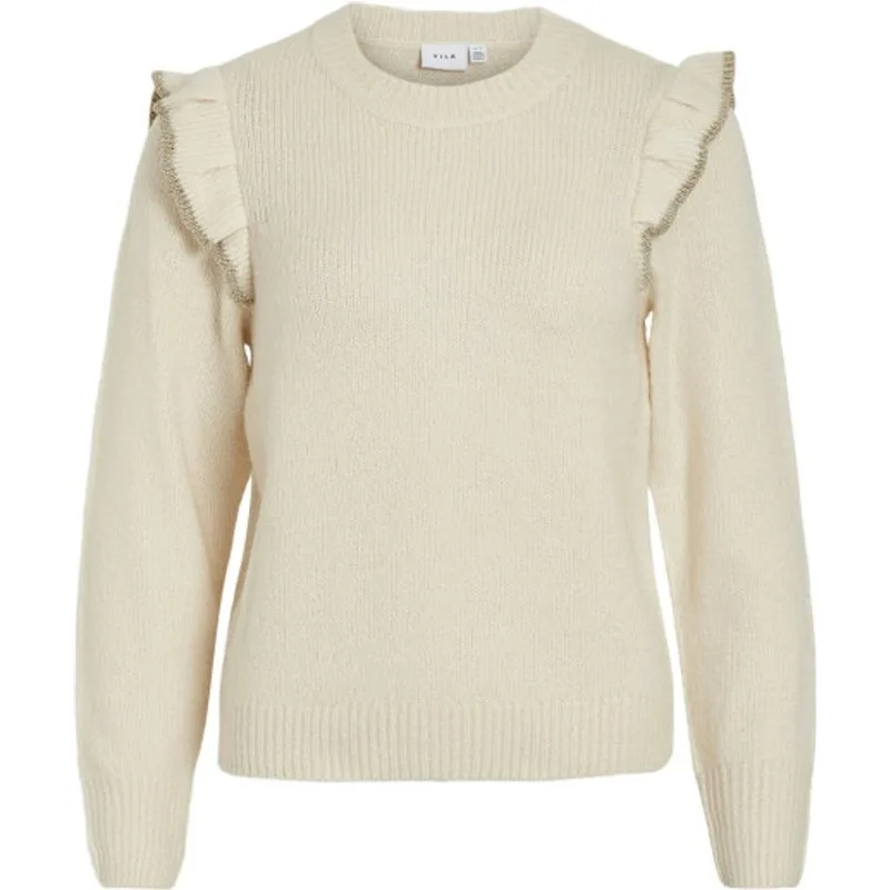 Vila Trui Vinanzy Ls Oneck Flounce Knit Top 14100771 Birchgold...