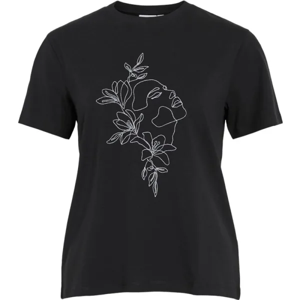 Vila T-shirt Vinora S/s T-shirt - Noos 14103448 Black Beauty/emb...