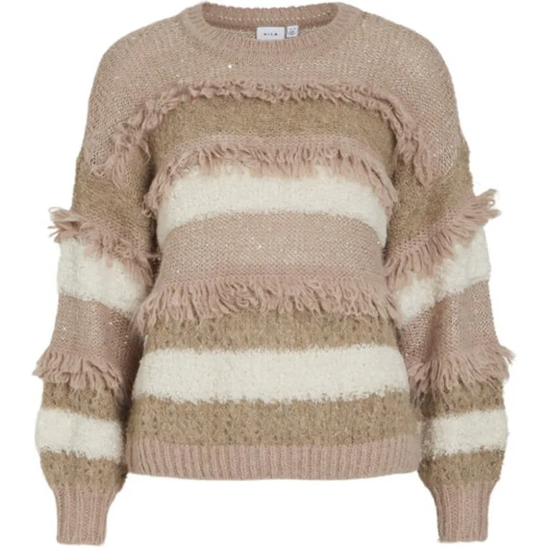 Vila Vituri o-neck ls sequin knit top zand dessin