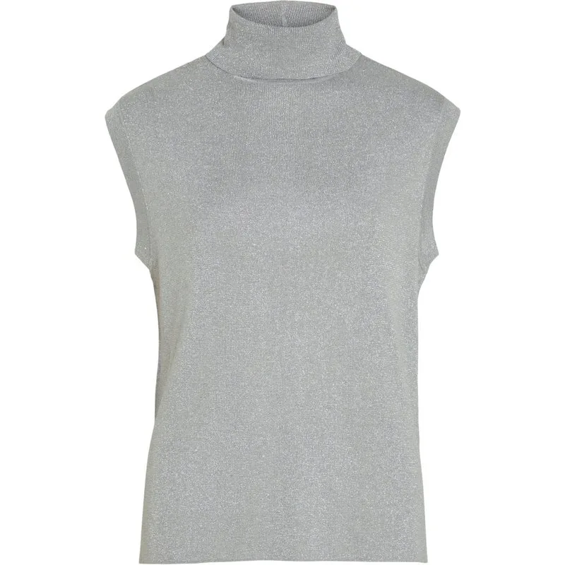 Vila Top Vixandra Highneck S/l Glitter Knit 14099901 Silver Dames...