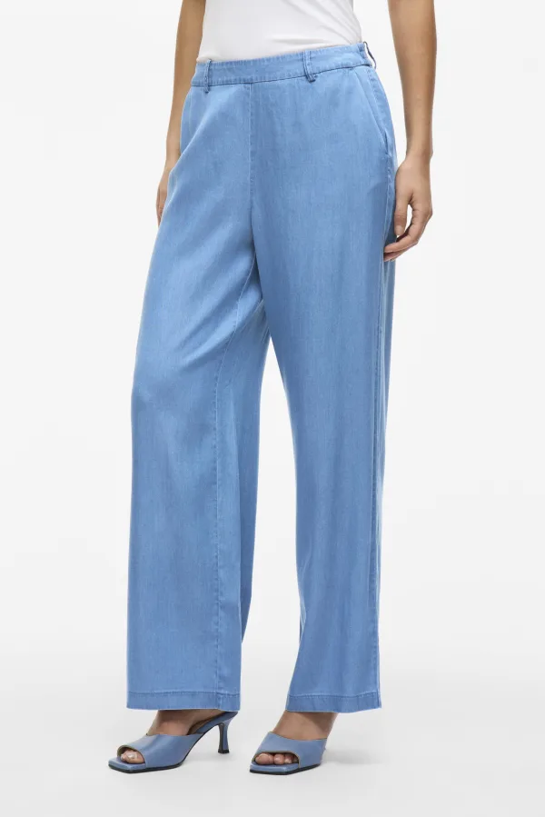 VILA wide leg high waist casual broek medium blue denim Prijzen