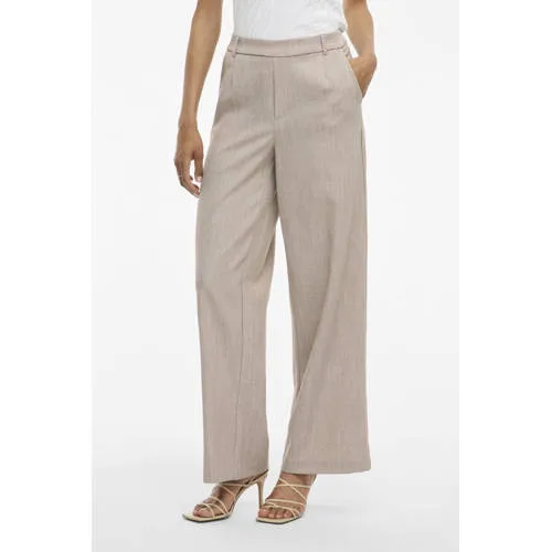 VILA wide leg high waist casual broek zand