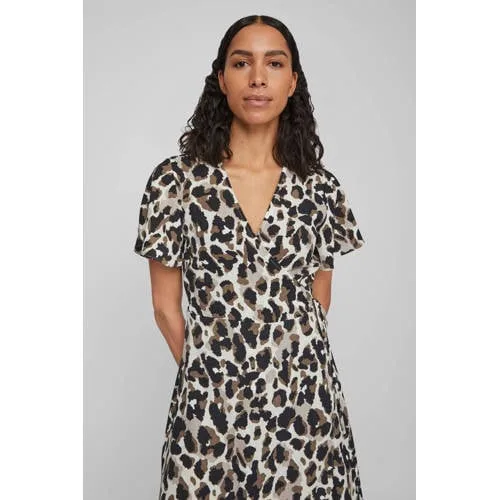 VILA wikkeljurk VILOVIE van polyester ecru/bruin/zwart