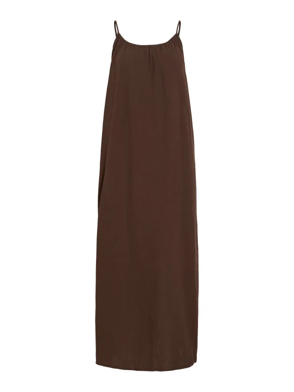 VILA Zomerjurk ‘VILANIA’ chocoladebruin