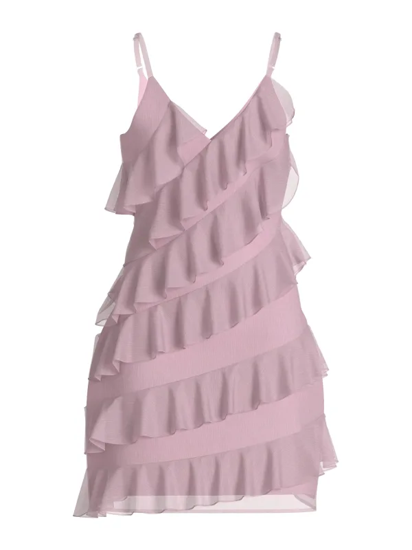 Design: Rechte zoom, Diepe snit/decolleté; Materiaal: Gerecycled materiaal; Halstype: V-hals; Motief: Effen; Soort bandjes: Spaghettibandjes; Details: Volant; Extra's: Op staal naden, Lichte stof; Lengte: Kort/mini; Snit: Getailleerd; Pasvorm: Normale pasvorm; Armlengte: Mouwloos