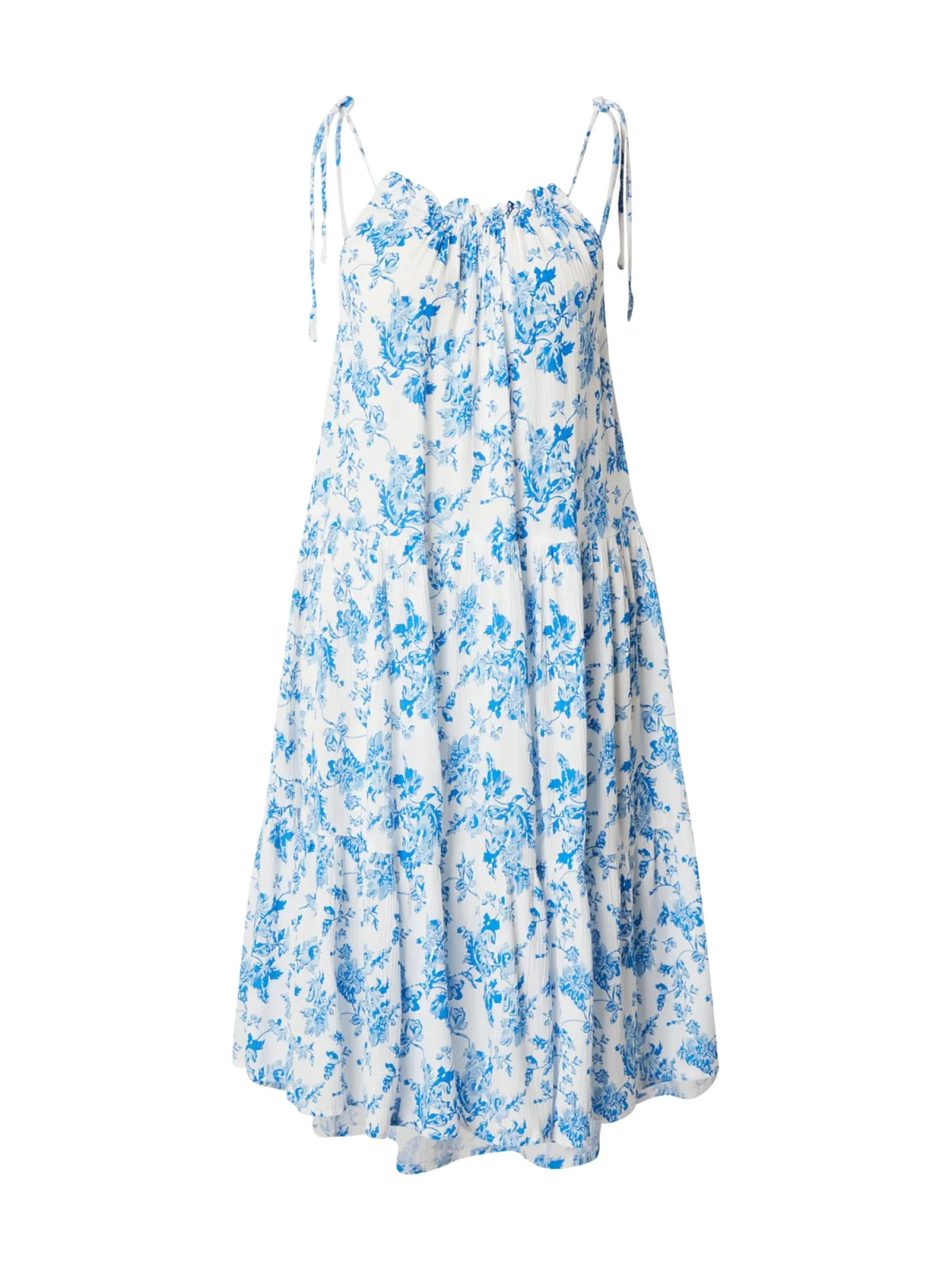 Design: Om te knopen/binden; Materiaal: Viscose; Halstype: Ronde hals; Motief: Bloemenprint; Soort bandjes: Spaghettibandjes; Details: Volant, Gedrapeerd; Extra's: All-over patroon, Lichte stof; Lengte: Kort/mini; Snit: Uitlopend; Pasvorm: Losse pasvorm; Armlengte: Mouwloos