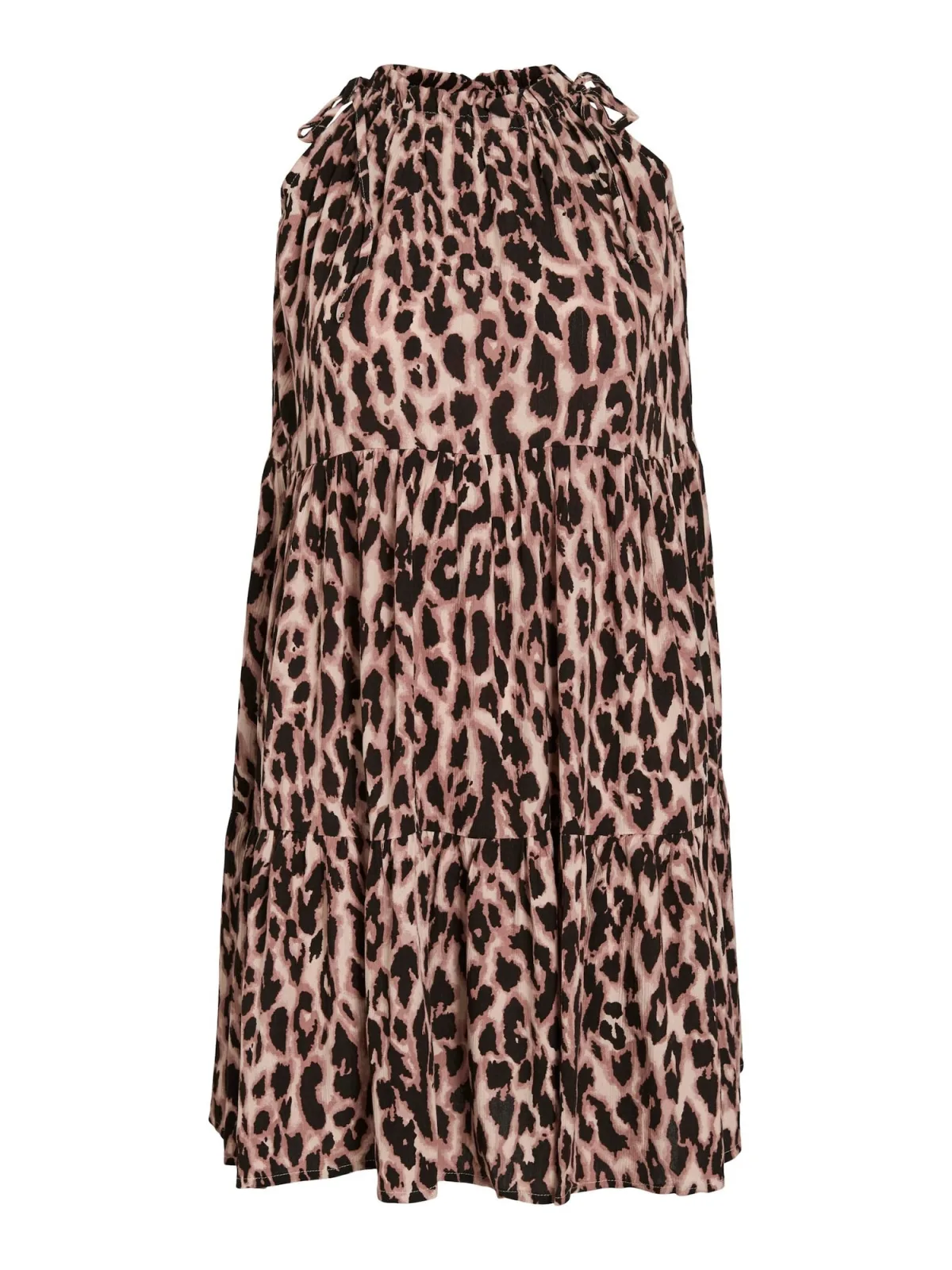 Design: Gevoerde zoom/rand, Om te knopen/binden; Materiaal: Viscose; Halstype: Ronde hals; Motief: Dierenprint; Soort bandjes: Spaghettibandjes; Details: Volant, Gedrapeerd; Extra's: All-over patroon, Gladde stof; Lengte: Kort/mini; Snit: Uitlopend; Pasvorm: Losse pasvorm; Armlengte: Mouwloos