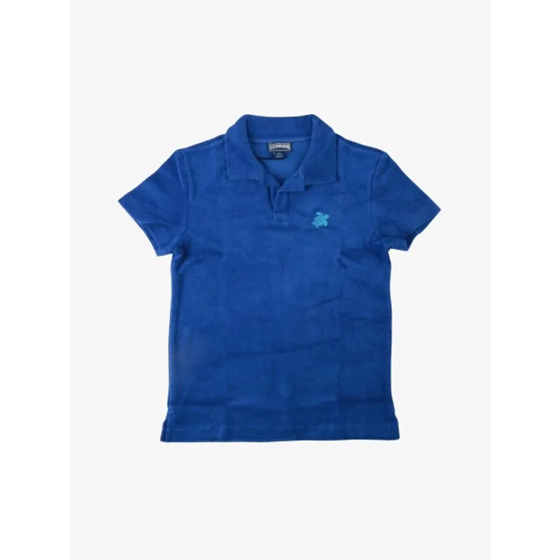 De Vilebrequin Kids Gill Polo in de kleur Marrakech is een kobalt blauwe polo. De polo heeft een badstof kwaliteit en een geborduurde schildpad op de borst in lichtblauw.