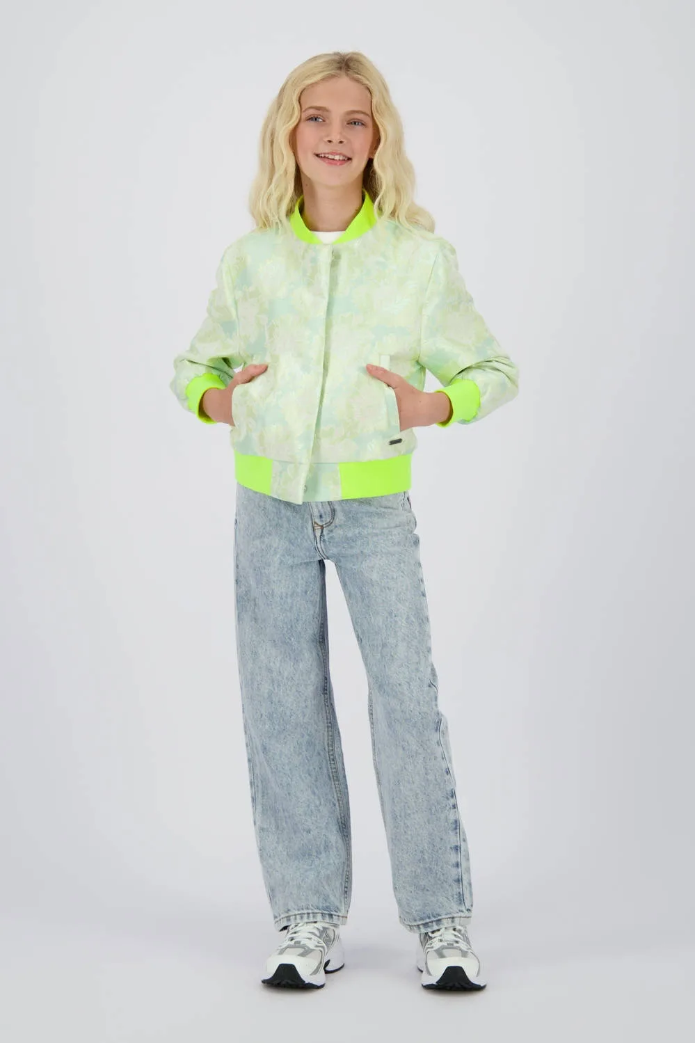 De Vingino Tamiri jas is ideaal voor meisjes. Dit glimmende bomberjack in limegroen is perfect voor de zomer. Het heeft een opstaande kraag en drukknoopsluiting met zakken aan de voorkant voor al je spullen.