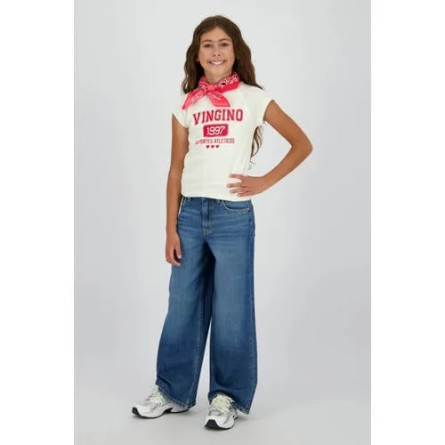 Deze Vingino meisjes jeans is gemaakt voor stoere schooldagen en ontspannen weekenden. Model 'Cita' heeft een wide leg pasvorm met een hoge taille, waardoor er veel bewegingsruimte is bij de benen en de broek netjes aansluit in de taille. De dark vintage wassing in dark blue denim geeft een rustige uitstraling die gemakkelijk combineert met T-shirts, truien en hoodies.Dagelijkse jeans met wide leg pasvorm Wide leg model voor extra bewegingsvrijheid bij de benen Hoge taille voor een moderne look en stabiele pasvorm Verstelbare tailleband aan de binnenkant, groeit makkelijk een stukje mee Comfortabele stof van katoen met een klein beetje stretch 5-pocket model met twee achterzakken, twee steekzakken en een muntzakje Praktische rits- en knoopsluiting die stevig dicht blijft Effen dark vintage kleur die goed past bij sneakers en laarzen Geschikt voor schoolkinderen en tieners in de daily collectieIdeaal voor school, spelen en chillenDeze wide leg jeans is een praktische basisbroek voor elke dag. Er is genoeg ruimte om te rennen, fietsen of buitenspelen, terwijl het hoge model goed op zijn plek blijft. De broek kan gewassen worden op 40 graden, is warm strijkbaar en blijft het mooist als die hangend droogt.Vingino: stoere stijl voor kidsVingino staat bekend om kinderkleding met een stevige kwaliteit, comfortabele fits en een duidelijke, eigentijdse stijl. Met deze Cita jeans krijgt je kind een broek die gemakkelijk vaak gedragen kan worden.Een praktische wide leg denim die moeiteloos meebeweegt met het drukke leven van je kind.