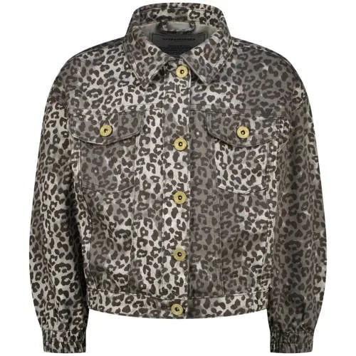 Deze spijkerjas van Vingino heeft een knoopsluiting en een kraag. Met mouwen tot over de pols en een leopard dessin. De kleur is donkergrijs en de borstzakken zitten op de voorkant.