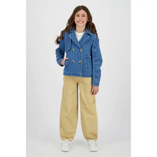 Deze Vingino jas heeft een knoopsluiting. Met reverskraag en denim. De voorkant heeft zakken die ruimte geven aan je telefoon je sleutel of je kaart.