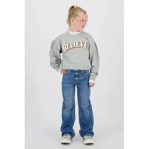Deze Vingino Cecile jeans heeft een flared pasvorm en een regular waist. De jeans is gemaakt van denim en heeft een rits- en knoopsluiting, lange pijpen en vijf zakken.