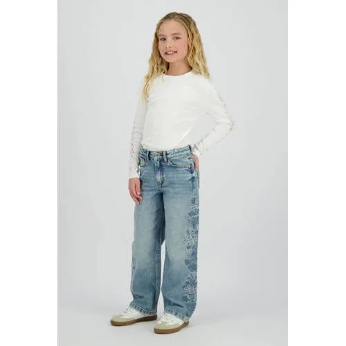 Vingino gebloemde wide leg jeans wide leg jeans medium blue denim
