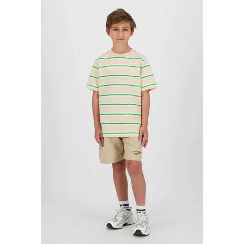 Op zoek naar een T-shirt voor elke dag? Dan is het Vingino Hayes T-shirt voor jongens een praktische basis voor de kledingkast. Het T-shirt heeft een opvallende streepprint in zalmroze, limegeel en groen die direct opvalt, zonder te druk te worden. De ronde hals en korte mouwen geven een ontspannen look die makkelijk combineert met een jeans, korte broek of jogger.Frisse kleuren en dagelijks comfort Streepprint in zalmroze, limegeel en groen voor een frisse, speelse uitstraling Korte mouwen en ronde hals voor een comfortabele pasvorm Zachte stof met 95% katoen die prettig aanvoelt op de huid Zonder sluiting, zodat het shirt gemakkelijk aan en uit gaat Onderdeel van de 'Daily' collectie, geschikt voor school en vrije tijd Geschikt voor schoolkind en tiener, passend bij verschillende leeftijden Onderhoudsvriendelijk: wasbaar op 30 graden, lauw strijkbaar (1 punt) en geschikt voor een regulier droogprogrammaVoor schooldagen en vrije middagenDit T-shirt past goed bij drukke schooldagen en ontspannen middagen. De soepele stof beweegt makkelijk mee, waardoor kinderen vrij kunnen spelen, sporten of chillen. De frisse kleuren komen ook op foto’s en tijdens uitjes goed naar voren.Vingino voor actieve kidsVingino maakt kinderkleding met een moderne uitstraling. De ontwerpen zijn afgestemd op het actieve leven van kinderen en combineren opvallende details met praktisch draaggemak. Met dit Hayes T-shirt haal je een kledingstuk in huis dat goed aansluit bij de rest van de Vingino garderobe.Een kleurrijke basic voor alledaagse outfits.
