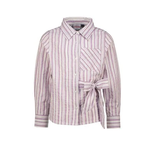Deze Vingino Livia blouse heeft een klassieke kraag en rechte mouwen. De blouse heeft een streep print, een borstzak en een strikje op de voorkant. Gemaakt van katoen en polyester.