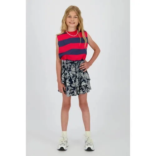 Fris, sportief en klaar voor elke dag, dit Vingino T-shirt voor meisjes is een praktische basic met een speelse twist. De rood met donkerblauwe strepen geven een sportieve, maritieme uitstraling en de mouwloze pasvorm maakt het shirt geschikt voor warme dagen of om onder een vest te dragen. Gemaakt van 100% katoen voelt het zacht aan op de huid en is het geschikt voor dagelijks gebruik.Gestreept shirt met zomerse uitstraling Mouwloos model, prettig voor warme dagen of om in laagjes te dragen Ronde hals die comfortabel aansluit zonder te knellen Streepprint in rood en donkerblauw voor een sportieve look Gemaakt van 100% katoen, dat prettig aanvoelt en eenvoudig te wassen is Rechte mouwinzet bij de schouder voor een nette, rustige belijning Een enkel T-shirt in de verpakking, praktisch als basisitemVoor school, sport en vrije tijdDit T-shirt past net zo goed bij een korte broek als bij een rok of een jeans. Geschikt voor schooldagen, een dagje weg of buitenspelen. Door de mouwloze snit blijft het luchtig, terwijl het gestreepte dessin makkelijk te combineren is met andere kledingstukken.Vingino: stoere stijl voor kidsVingino staat bekend om eigentijdse kindercollecties met een comfortabele pasvorm en herkenbare details. De items zijn afgestemd op het actieve leven van kinderen en worden gemaakt met oog voor kwaliteit en draaggemak, zodat ze lang mooi blijven in het dagelijks gebruik.Een praktisch T-shirt dat in veel dagelijkse outfits past.