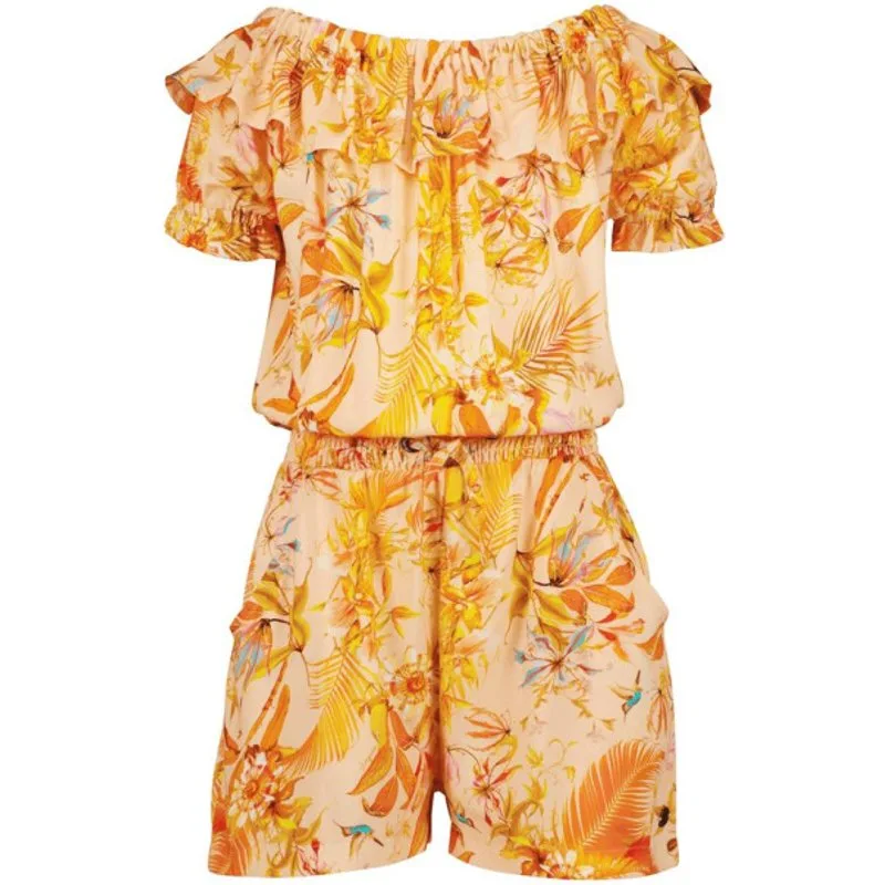 Vingino Philine Meisjes Jumpsuit Ontdek de Vingino Philine meisjes jumpsuit: een trendy en comfortabel kledingstuk dat perfect is voor meisjes die er stijlvol willen uitzien en zich vrij willen bewegen. Deze jumpsuit van Vingino combineert mode en functionaliteit op een speelse en moderne manier. De Philine jumpsuit is gemaakt van hoogwaardige materialen die zacht en ademend aanvoelen op de huid. Het ontwerp is zorgvuldig vervaardigd met oog voor detail, waardoor het een echte blikvanger is. De jumpsuit heeft een trendy all-over print, een elastische tailleband. Pluspunten: + Ideaal voor zomerse dagen + Alleen nog slippers eronder en je bent klaar voor de dag! + Comfortabel