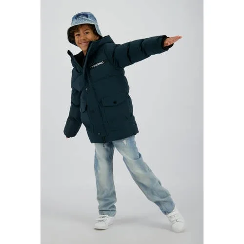 Deze jas van Vingino heeft een capuchon en een rits- en drukknoopsluiting. De jas is gevoerd, waterafstotend en heeft afsluitbare zakken. Je draagt deze jas in de winter.