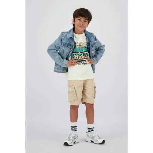 Deze Vingino cargo shorts voor jongens heeft een elastische tailleband met koord en is gemaakt van 98% katoen en 2% elastaan. De korte broek in lichtzand biedt zowel zakken aan de voorkant als achter en cargozakken.