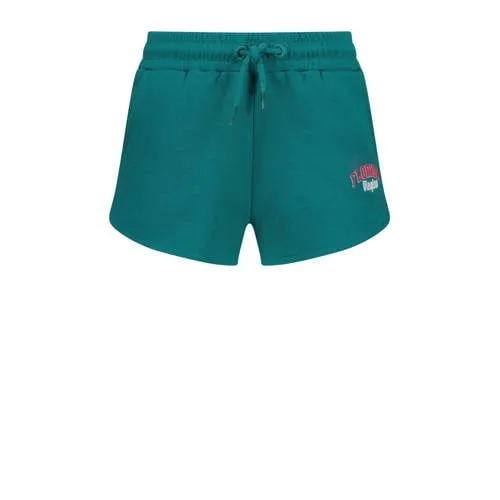 Met deze korte broek van Vingino draag je als meisje sweatshorts in een regular fit en een elastische tailleband met koord. Gemaakt van 100% katoen, heeft zakken aan de voorkant en een zeegroene kleur.