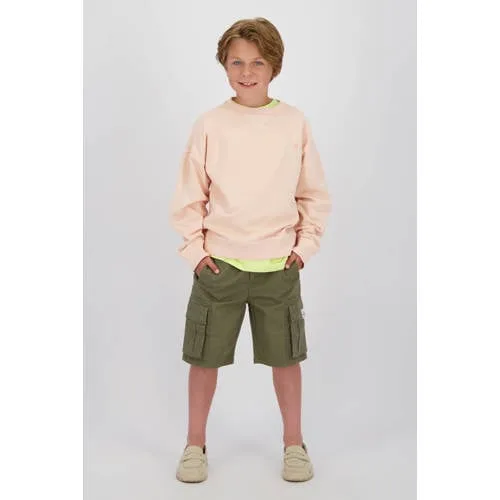 Voor school, buitenspelen en relaxte dagen is deze army groene jongens cargo bermuda korte broek van Vingino een praktische keuze. De korte broek heeft de stijlnaam Cliff en valt in een regular pasvorm, zodat hij niet te strak of te wijd zit. De armygroene kleur is makkelijk te combineren met T-shirts, hoodies en sneakers.Handige details voor elke dag Gemaakt van 80% katoen en 1% elastaan voor een zachte stof met lichte stretch Elastische tailleband met koord voor een stevige, maar toch comfortabele sluiting Regular waist en regular fit, passend voor schoolkind en tiener Met zakken voor, zakken achter en cargozakken aan de zijkant voor extra opbergruimte Effen ontwerp in armygroen, passend bij de Daily collectie Eén korte broek in de verpakking, makkelijk te combineren in de kledingkast Wasbaar op 30 graden, lauw strijkbaar (1 punt) en geschikt voor een regulier droogprogrammaComfortabele bermuda voor actieve dagenDeze bermuda shorts zijn gemaakt voor drukke dagen vol beweging. De zachte stof beweegt soepel mee en de cargozakken bieden ruimte voor kleine spullen zoals een sleutel of een kaartje. Door de elastische tailleband blijft de broek goed op zijn plek, ook tijdens rennen en springen.Vingino: stoere kinderkleding met aandacht voor detailVingino staat bekend om kinderkleding met een stoere stijl en een comfortabele pasvorm. De ontwerpen zijn afgestemd op het actieve leven van kinderen, met sterke materialen en doordachte details. Zo krijgt jouw kind kleding waarin het zich vrij kan bewegen en er tegelijkertijd verzorgd uitziet.Een praktische korte broek die door de zachte stof en elastische tailleband geschikt is voor dagelijks gebruik gedurende het hele seizoen.