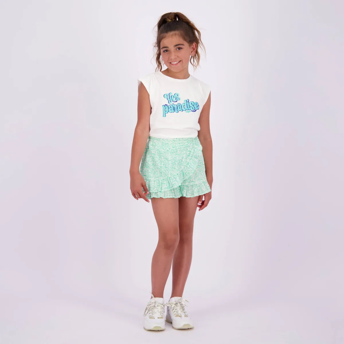 Vingino skort Rianna met all over print en volant mintgroen/wit Prijzen