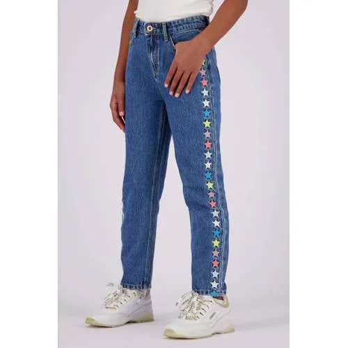 Vingino straight leg jeans met sterren mid blue wash