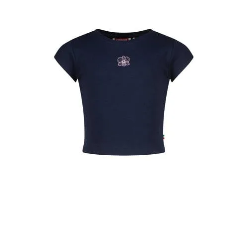 Dit donkerblauwe meisjes T-shirt van Vingino heeft een ronde hals en korte mouwen. Gemaakt van modal, katoen en elastaan voor comfort en bewegingsvrijheid. Perfect om elke dag te dragen.