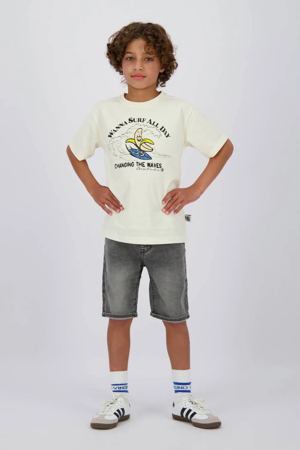 Dit T-shirt voor jongens van Vingino heeft een ronde hals en korte mouwen. Het is ecru van kleur en gemaakt van 100% katoen. Een fijne toevoeging aan de garderobe voor dagelijks draaggemak.