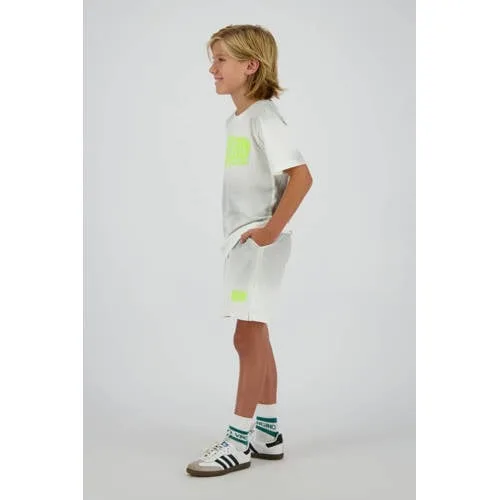 dit Vingino T-shirt Honzi heeft korte mouwen en een ronde hals, gemaakt van 100% katoen. het shirt heeft een lichtgrijze kleur met witte accenten en voelt prettig aan tijdens het dragen.
