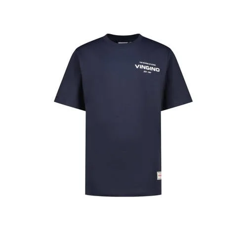 Dit T-shirt van Vingino is donkerblauw en heeft een ronde hals. Het is gemaakt van 100% katoen en voelt heerlijk op de huid. Combineer het eenvoudig met jouw favoriete kleding.