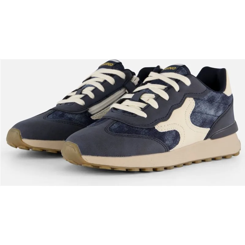 Deze Vingino Denim sneakers zijn volledig gemaakt van leer en textiel. De sneakers zijn voorzien van een uitneembaar voetbed en een vetersluiting. De zool is gemaakt van rubber en heeft een dikte van 2 centimeter.