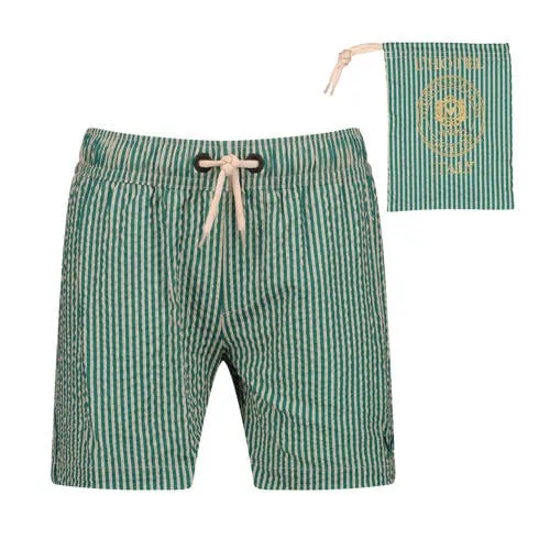 Met de Vingino boys swim shorts zwemshort voor jongens is jouw kind klaar voor elke zwemsessie. De frisse groene kleur met streepdetails geeft een sportieve look, terwijl de soepele, sneldrogende stof prettig aanvoelt tijdens het spelen in het water of op het strand. Deze zwemshort is ontworpen voor schoolkinderen en tieners, met een pasvorm die veel bewegingsvrijheid biedt.Praktische details voor zorgeloos zwemplezier Elastische tailleband met koord voor een persoonlijke en stevige pasvorm Voorzien van mesh binnenbroek voor extra comfort en ondersteuning Zakken voor, handig voor kleine spulletjes rond het zwembad of strand Wordt geleverd met bijpassend zakje, ideaal om de short compact op te bergen Geschikt voor dagelijks gebruik in de zomer of op vakantie Wasbaar op 30 graden, hangend drogen en niet strijken voor langdurig kleurbehoud Hygiënevoorschrift: i.v.m. hygiëne dient badkleding gepast te worden over eigen ondergoedIdeaal voor zwembad, strand en waterpretOf het nu gaat om zwemles, een middag aan het meer of spelen in de branding, deze zwemshort blijft comfortabel zitten. De elastische taille en het koord zorgen dat de broek goed blijft zitten, ook als er gesprongen en gedoken wordt.Vingino, stoere stijl voor kidsVingino staat bekend om kinderkleding met een eigentijdse uitstraling en doordachte details. De swimwear collectie sluit aan bij het actieve leven van kinderen, met spullen die er modern uitzien en praktisch in gebruik zijn.Een betrouwbare keuze voor zorgeloze waterpret en een frisse, sportieve look.