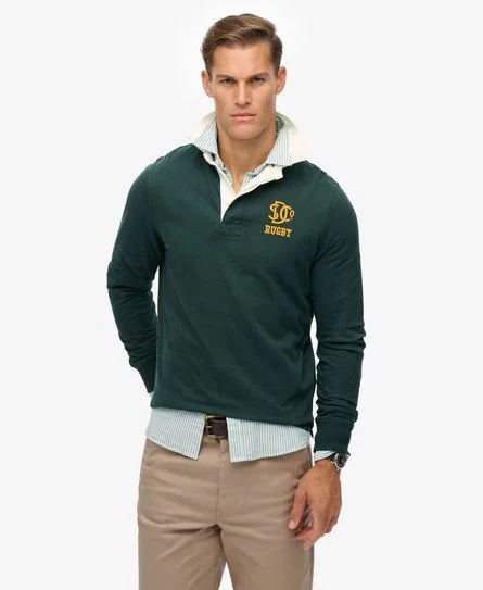 Relaxte pasvorm - de klassieke Superdry-pasvorm. Niet te nauwsluitend, niet te ruim, precies goed. Kies je gebruikelijke maat Rugbykraag met drie knopen Lange mouwen Geribde manchetten Zijboord met split Geborduurd Superdry-logo Kenmerkend Superdry-label Het Vintage Athletic jersey rugbyshirt is een iconisch kledingstuk dat is geïnspireerd op zowel de Britse sport als de Amerikaanse variant ervan. We hebben het klassieke ontwerp van rugbyshirts als basis genomen en het extra cachet gegeven voor