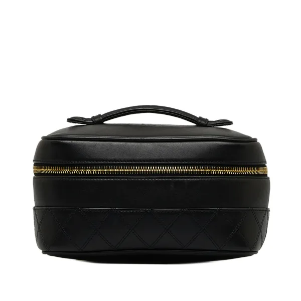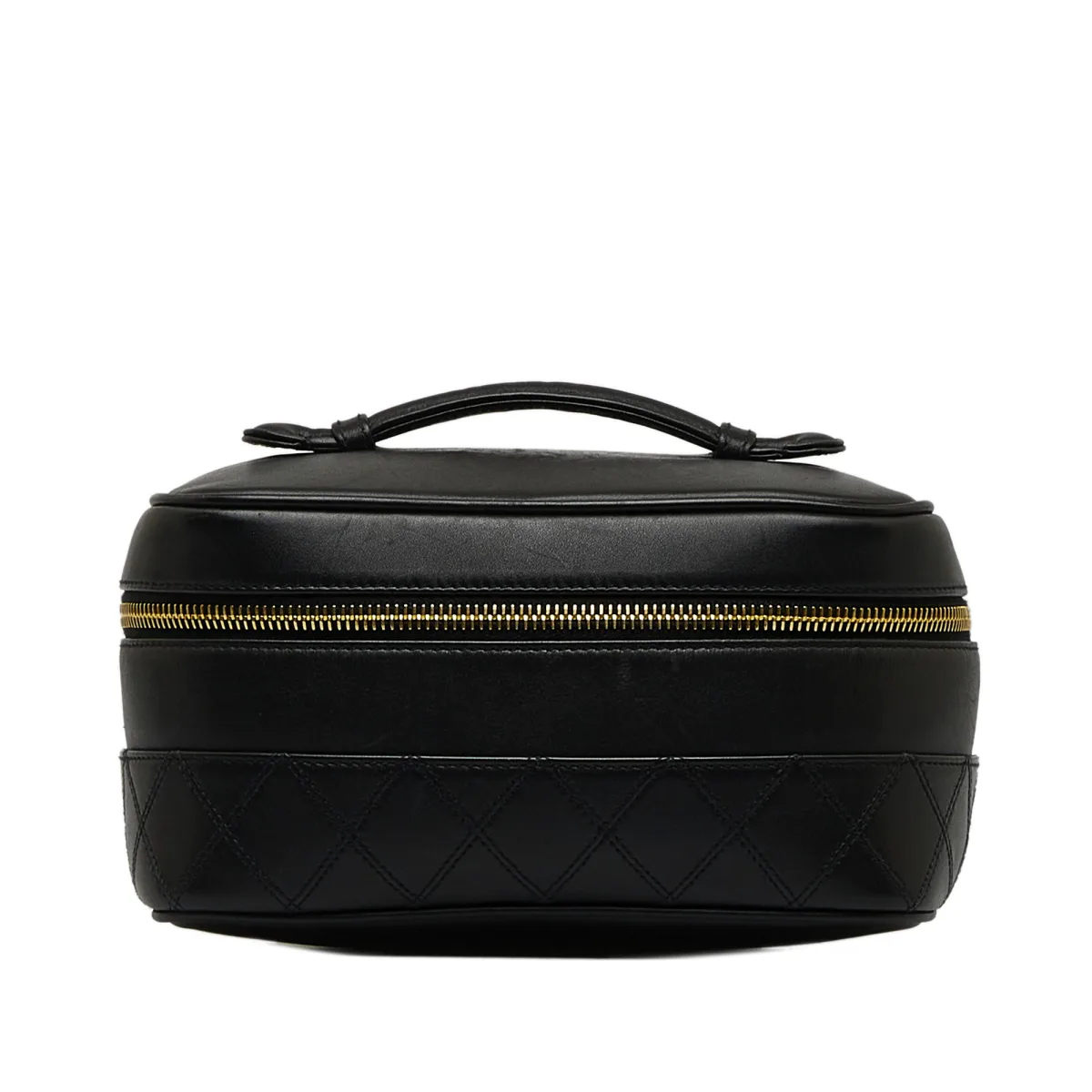 VINTAGE. RRP AS NEW. This vanity bag features a lambskin leather body, a quilted bottom, a top handle, a top zip closure and an interior slip pocket.Exterior Front Out Of Shape, Scratched. Exterior Back Scratched. Exterior Bottom Out Of Shape, Scratched. Exterior Handle Out Of Shape, Scratched. Exterior Corners Worn. Exterior Side Out Of Shape, Scratched. Exterior Top Out Of Shape, Scratched. Interior Lining Out Of Shape, Scratched. Interior Lining stained with Other. Interior Pocket Cracked, Scratched. Interior Pocket stained with Other. Embellishment Scratched. Zipper Scratched. Dimensions: Length 19cm Width 10cm Depth 14cm Hand Drop 2cm Shoulder Drop 3cm Original Accessories: Authenticity Card, Authenticity Card Serial Number: 3184475 Color: Black Material: Leather x Lambskin Leather Country of Origin: Italy Boutique Reference: SSU226874K1342 Product Rating: GoodCondition Certificate of Authenticity is available upon request with no extra fee required. Please contact our customer service team.