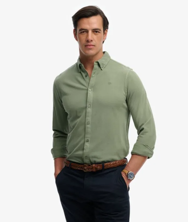 Vintage Destroy Piqué Overhemd met Lange Mouwen Green