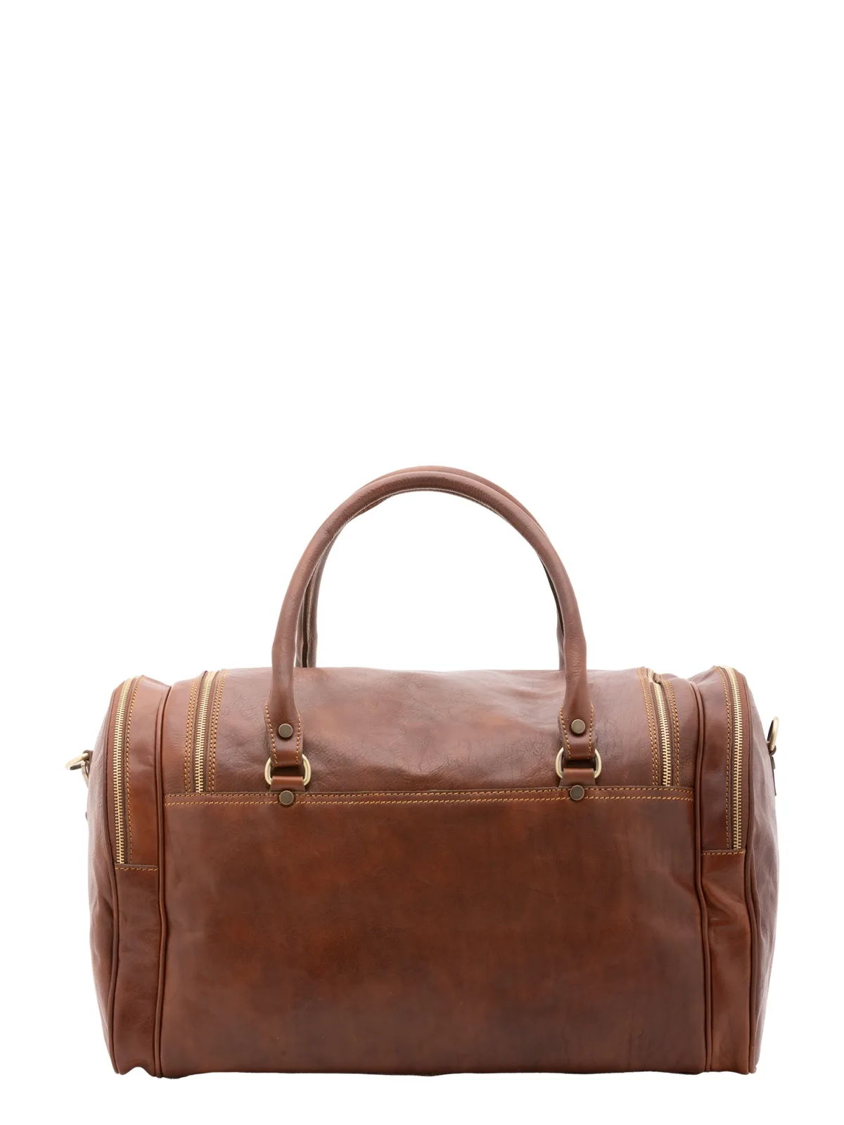 Design: Muntenzak; Type sluiting: Ritssluiting; Materiaal: Leer; Motief: Effen; Materiaal: Glad leer; Type tas: Dufflebag; Extra's: Op staal naden; Maat (inhoud): Middel (25-50 l); Hengsellengte: Lange schouderriemen, Korte schouderriemen