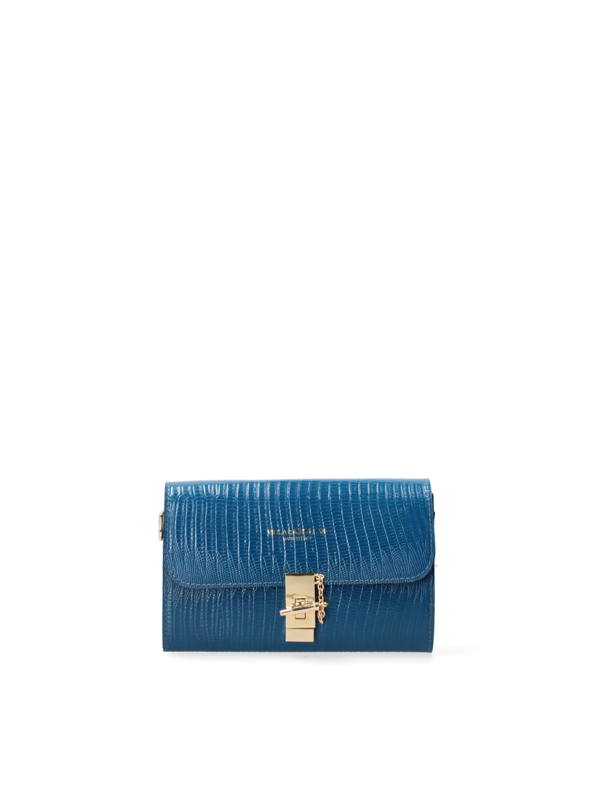 Crossbodytas voor dames met draaisluiting. één met binnenzakken met ritssluiting. afwezige externe zakken. afneembaar op kettingschouderband. ontbrekend handvat. twee binnenvakken. extern materiaal. gevoerd met 70% katoen - 30% polyester binnenkant. Afmetingen: 23x13x5 cm. Gemaakt in Italië