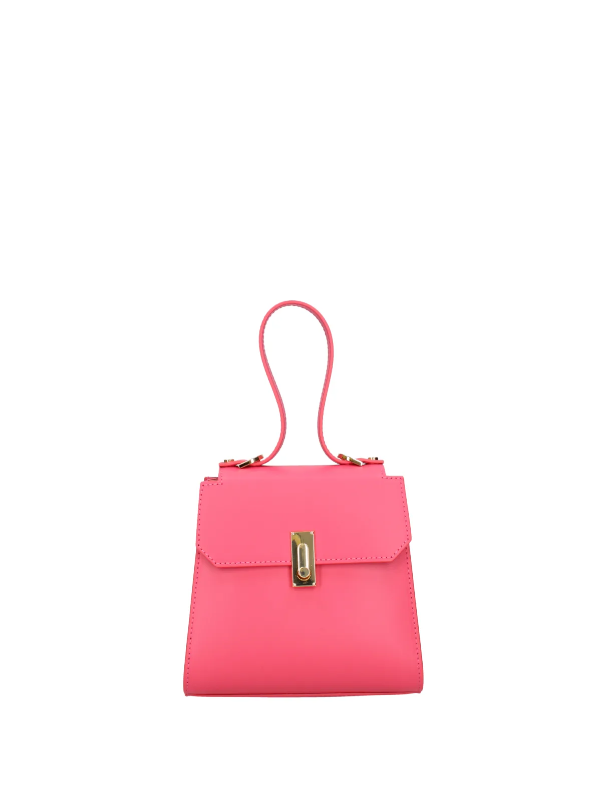 Dameshandtas met rollatorsluiting. één met binnenzakken met ritssluiting. één open externe achterzak. verstelbare en afneembare lederen schouderband. Leren handvat. één binnenvakken. Handtas|Dames extern materiaal gevoerd met echt lederen binnenkant. Afmetingen: 20x18x10 cm. Gemaakt in Italië