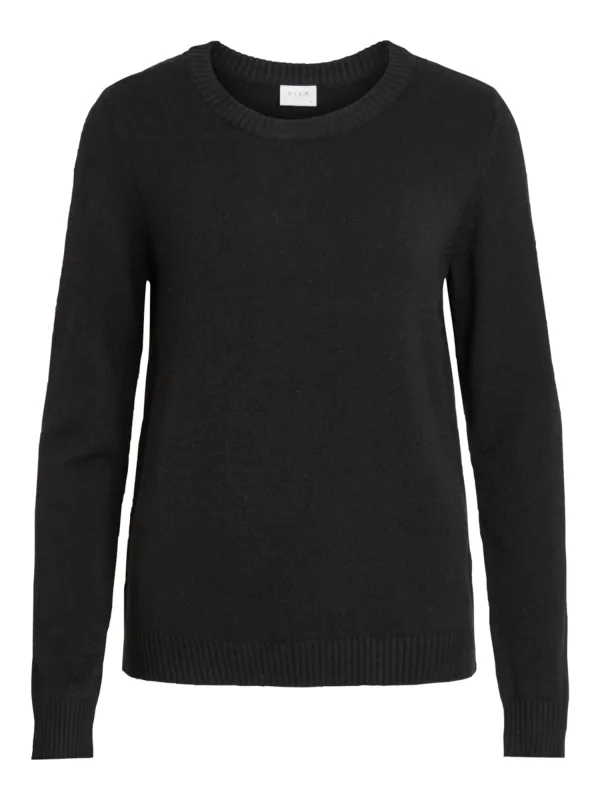 VIRIL O-NECK L/S KNIT TOP – NOOS Dames Trui Black –