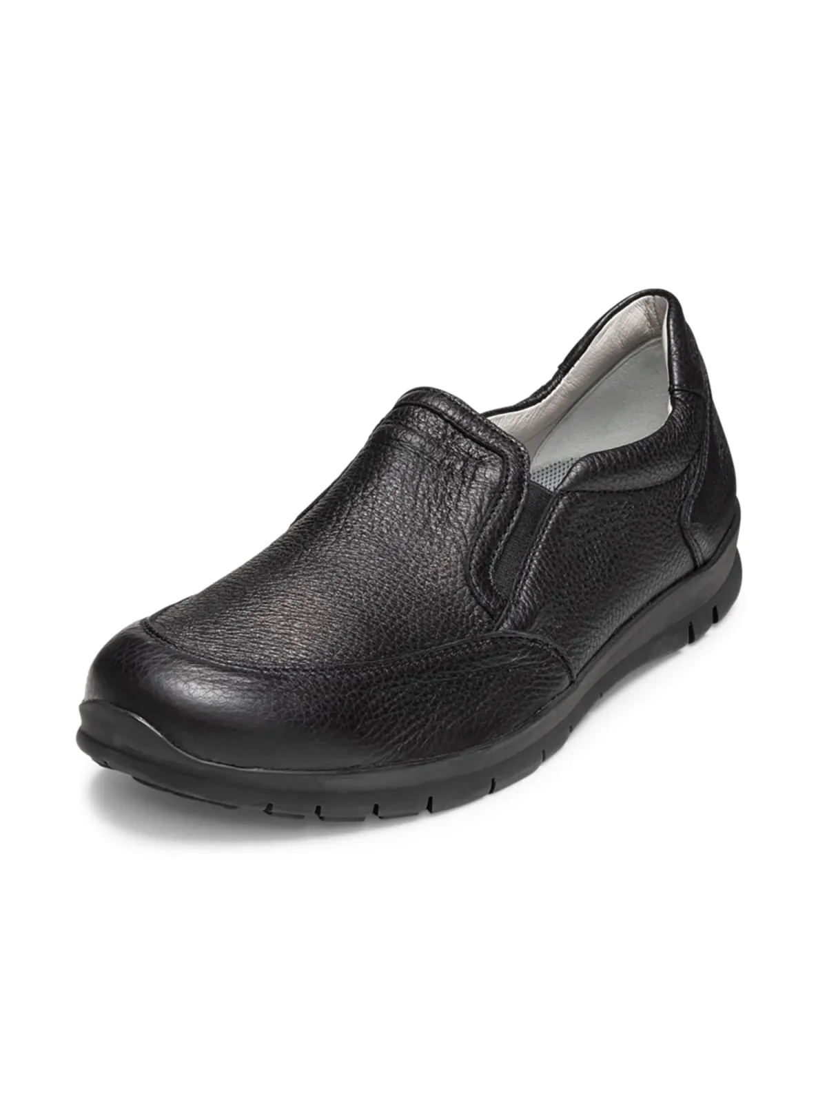 Design: Elastische inzetstukken, Profielzolen; Type sluiting: Slip; Materiaal: Leer; Motief: Effen; Materiaal: Glad leer; Schoenneus: Ronde neus; Extra's: Korrelig leder, Flexibele zool; Pasvorm van de schoenen: Breed