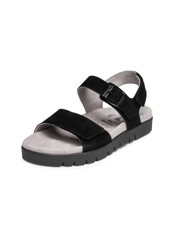 Design: Profielzolen; Type sluiting: Velcro sluiting; Materiaal: Leer; Motief: Effen; Plateau: Met plateau; Materiaal: Suède; Schoenneus: Open toe; Extra's: Flexibele zool; Hakhoogte: Middelhoge hak (3-7 cm); Pasvorm van de schoenen: Breed