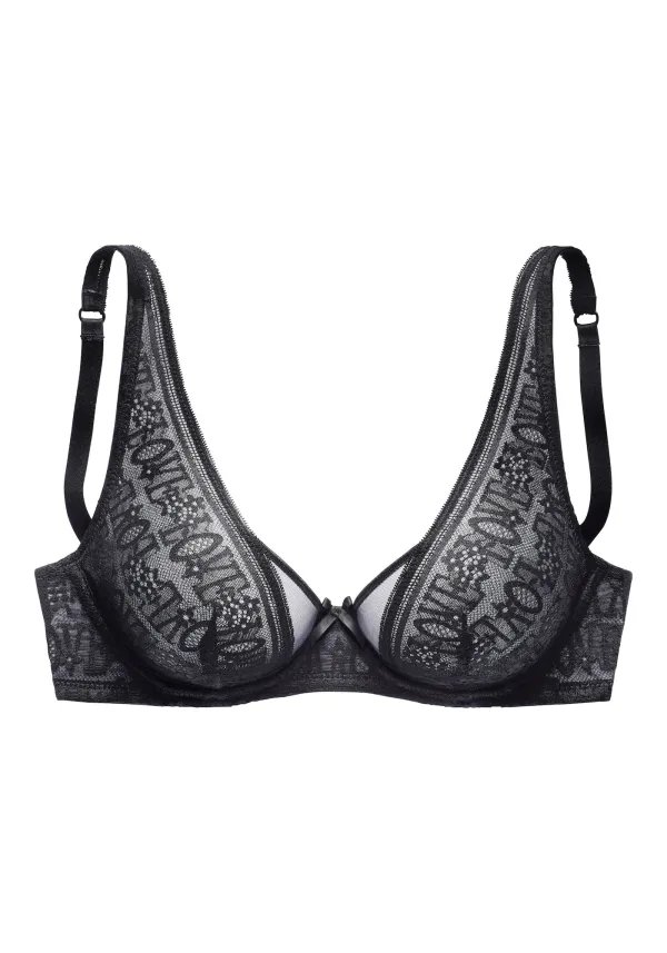 Cup soorten: Demi cup bh; Soort bandjes: Normale bandjes; Bh/bikini type: Balconette; Beugel: Met beugel; Design: Elastische taille/zoom; Type sluiting: Haakjes; Motief: Tekst print; Details: Kant; Extra's: Verstelbare bandjes