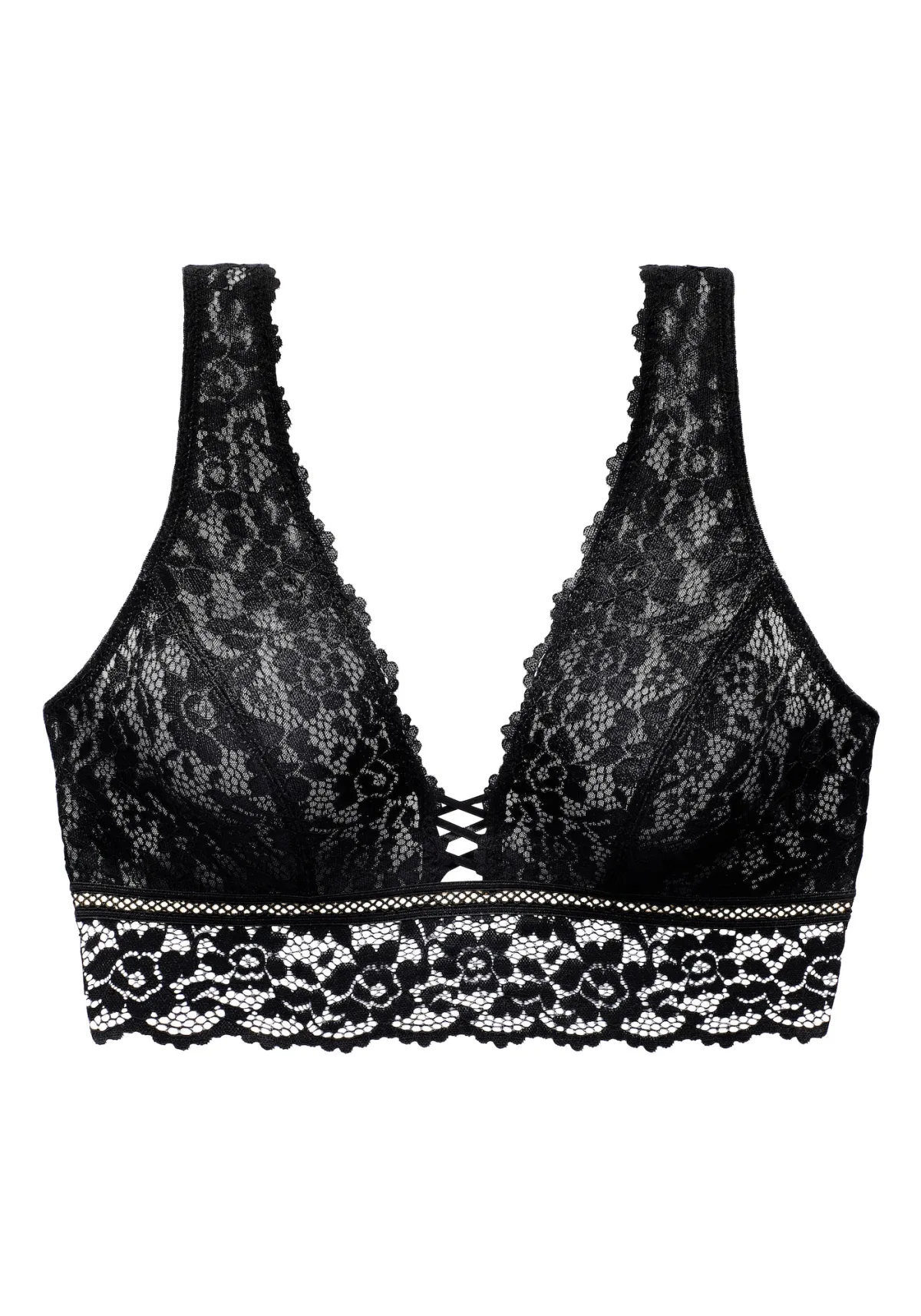 Cup soorten: Uitneembare cups; Soort bandjes: Normale bandjes; Bh/bikini type: Triangel; Beugel: Zonder beugel; Design: Geschulpte zoom; Type sluiting: Haakjes; Motief: Effen; Details: Kant; Extra's: Op staal naden