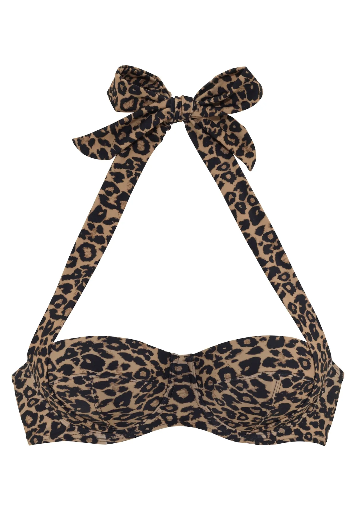Cup soorten: Demi cup bh; Soort bandjes: Halterbandjes; Bh/bikini type: Balconette; Beugel: Met beugel; Motief: Dierenprint