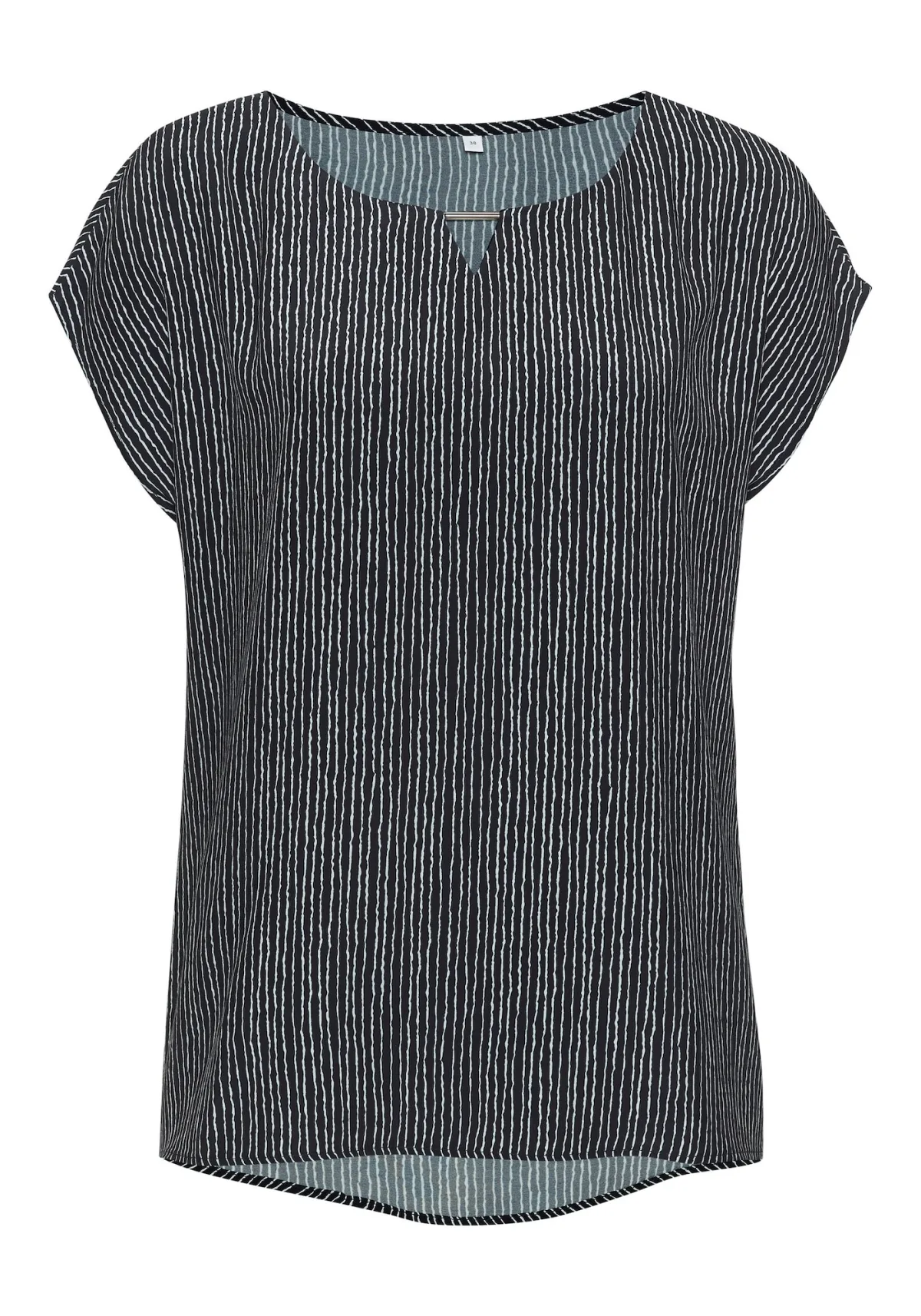 Blouse type: Blouseshirt; Design: Verlengd rugpand; Motief: Gestreept; Kraag: Zonder kraag; Details: Cut-outs; Extra's: All-over patroon; Pasvorm: Losse pasvorm; Armlengte: Kwartmouw; Lengte: Normale lengte
