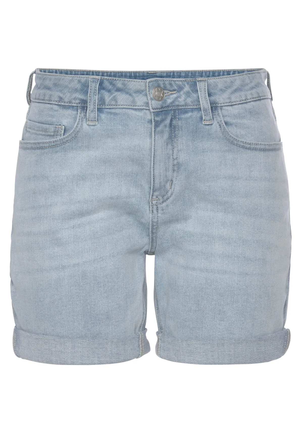 Design: 5-pocket-style; Materiaal: Denim; Motief: Effen; Extra's: Riemlussen; Wassing: Blauw denim; Lengte: Kort/mini; Pasvorm: Slimfit; Taillehoogte: Mid waist