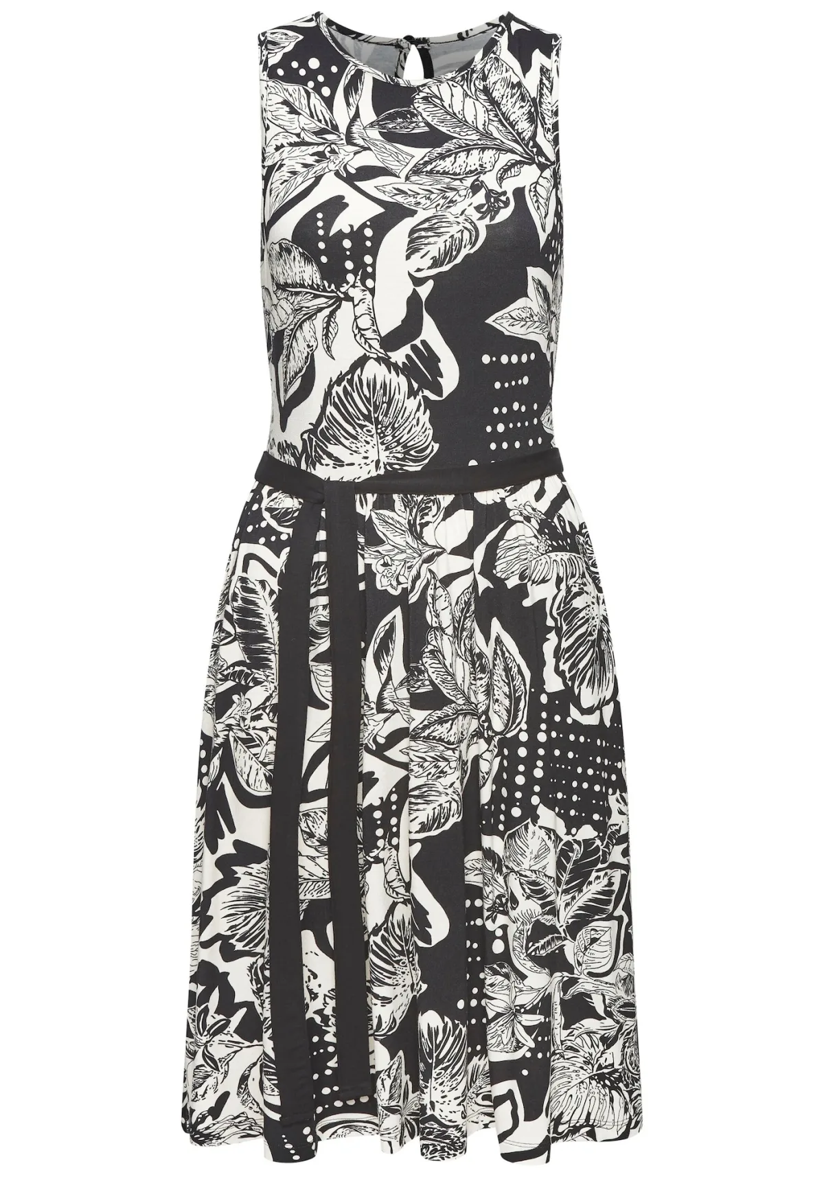 Design: Gevoerde zoom/rand, Keyholesluiting; Type sluiting: Knoopsluiting; Materiaal: Jersey; Halstype: Ronde hals; Motief: Bloemenprint; Soort bandjes: Brede bandjes; Details: Cut-outs; Extra's: Gladde stof, Voelt zacht aan; Lengte: Knielengte; Snit: Getailleerd; Pasvorm: Normale pasvorm; Armlengte: Mouwloos