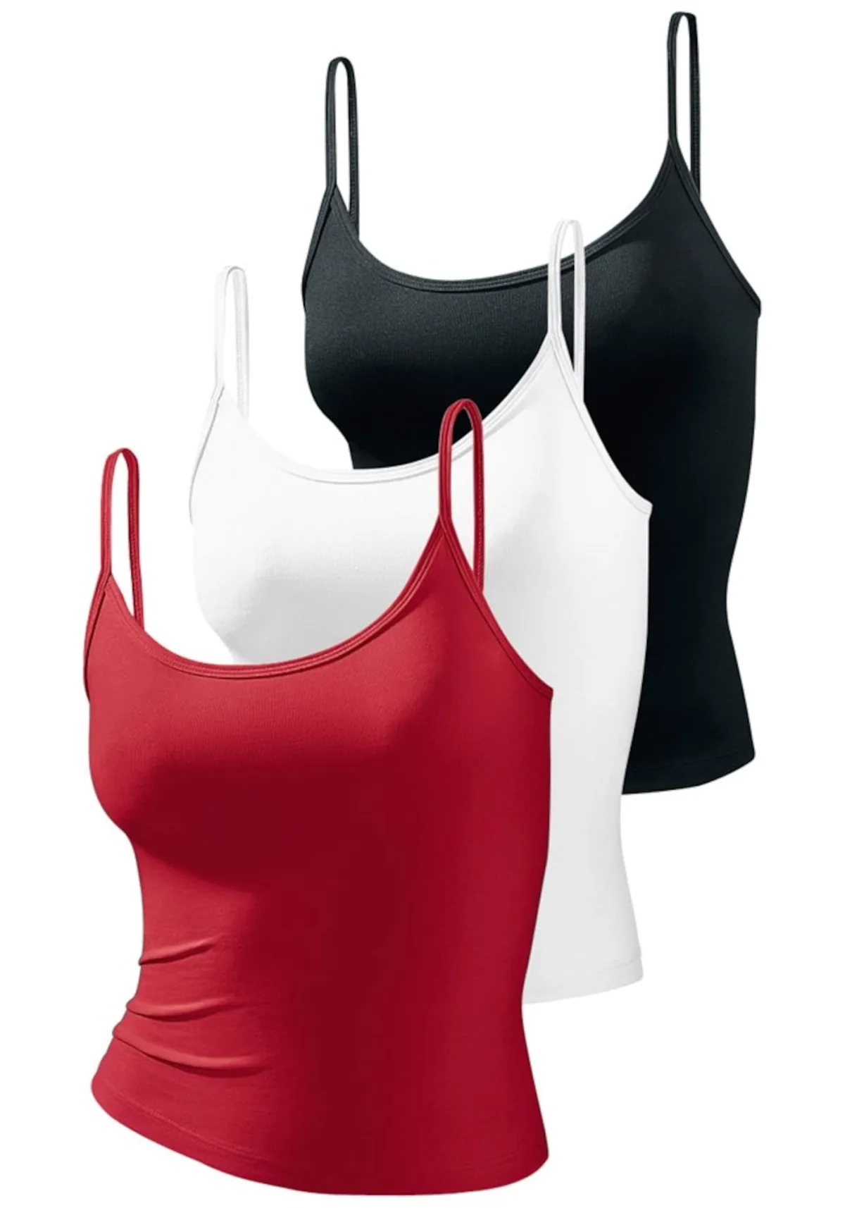 Materiaal: Jersey; Halstype: Ronde hals; Soort bandjes: Spaghettibandjes; Pasvorm: Normale pasvorm; Kleuren per verpakking: Meerdere kleuren per verpakking; Aantal: 3 Pack; Armlengte: Mouwloos; Lengte: Normale lengte